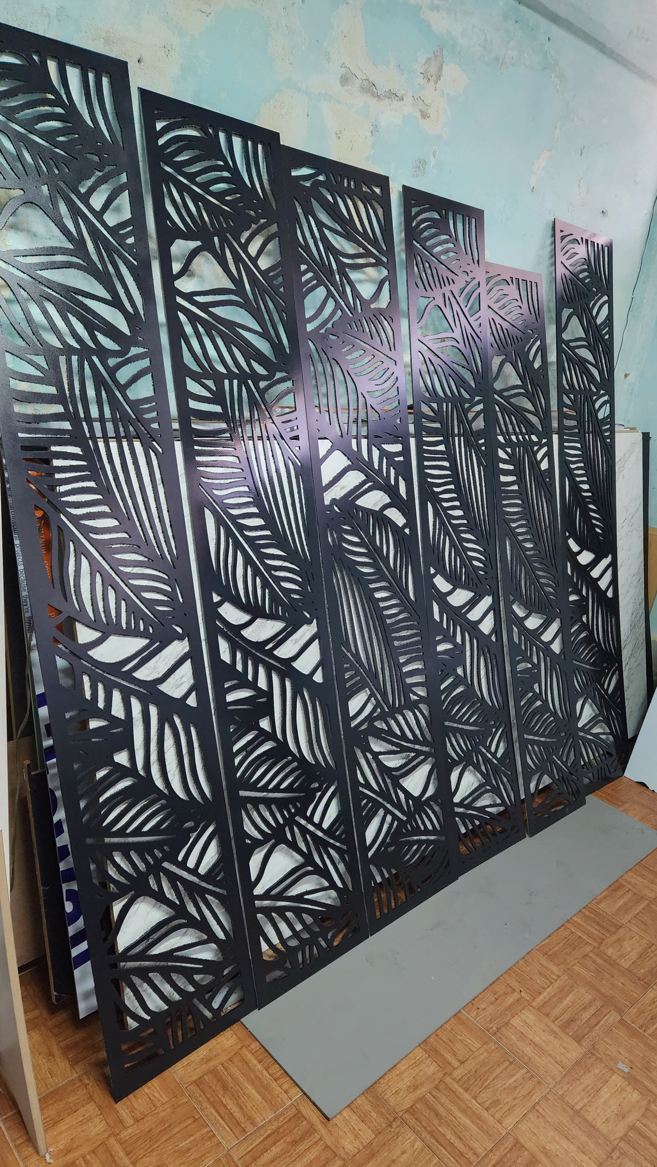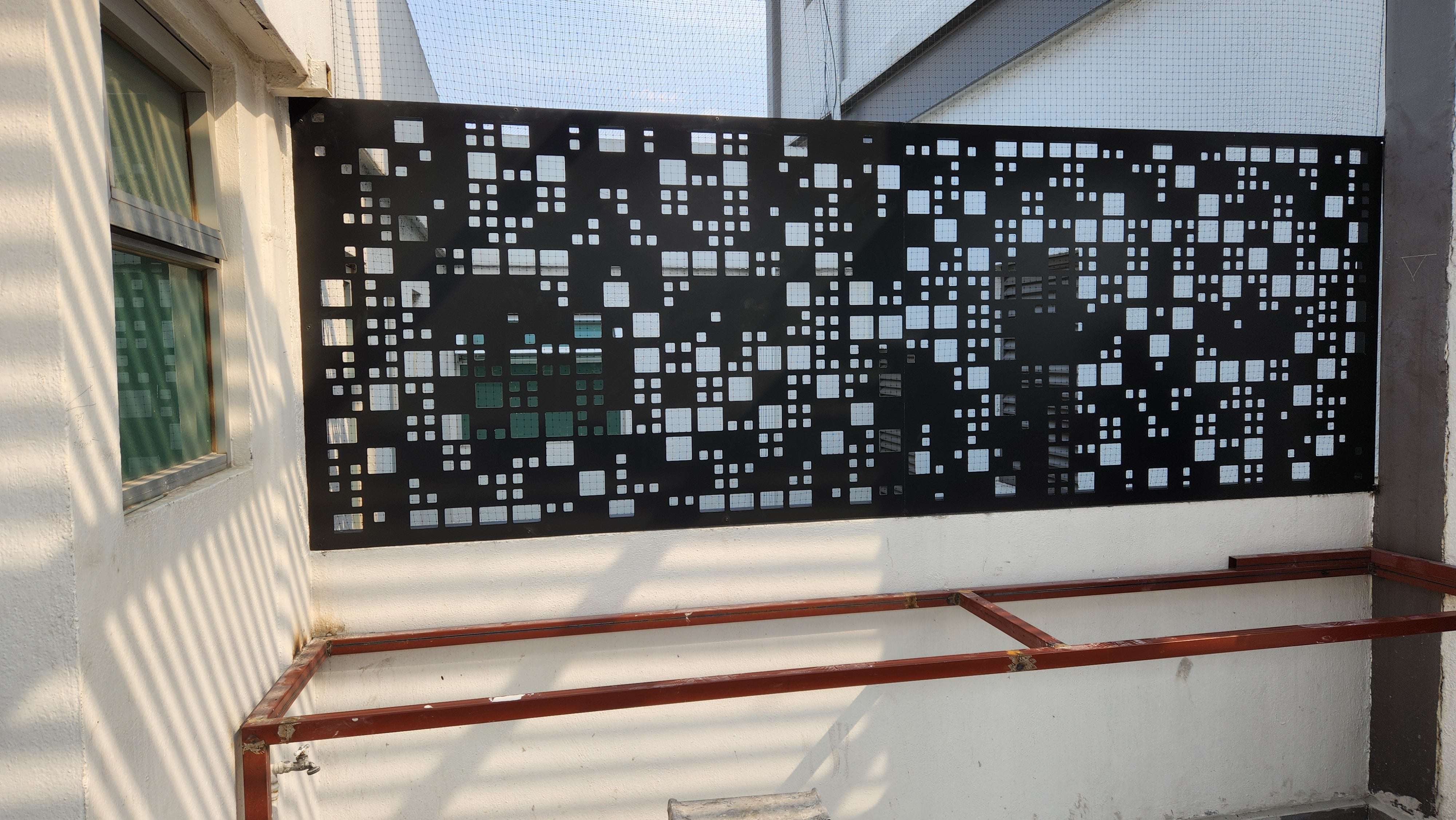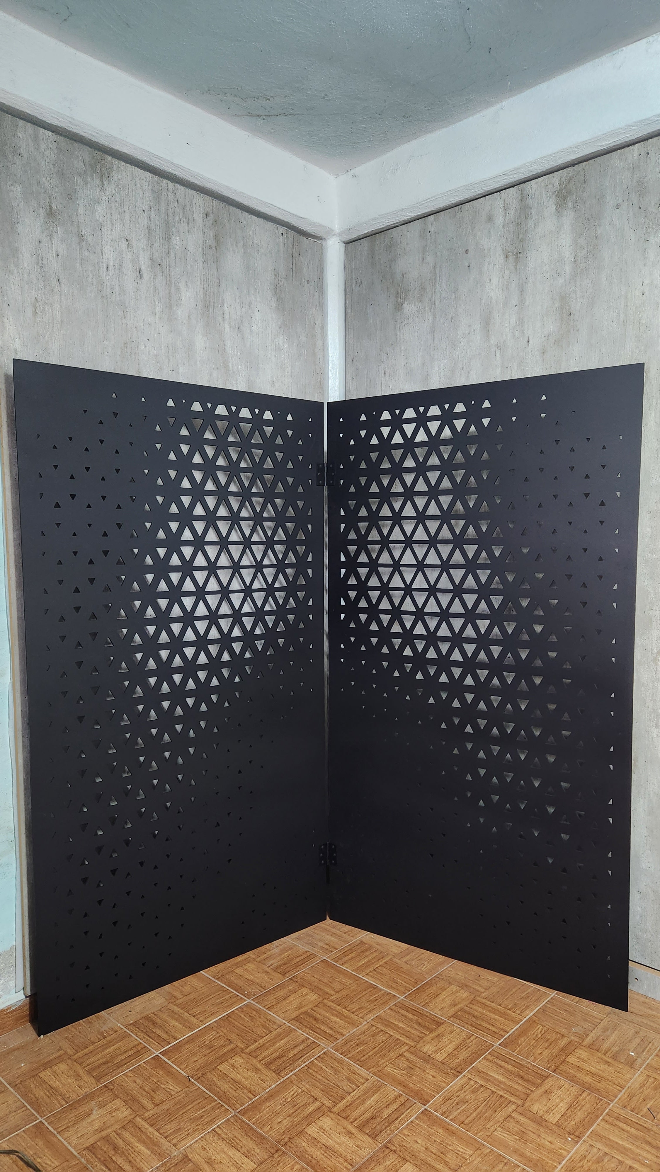 Celosías fabicadas en mdf de 6 mm, con tratamiento de pintura automotiva color negro.