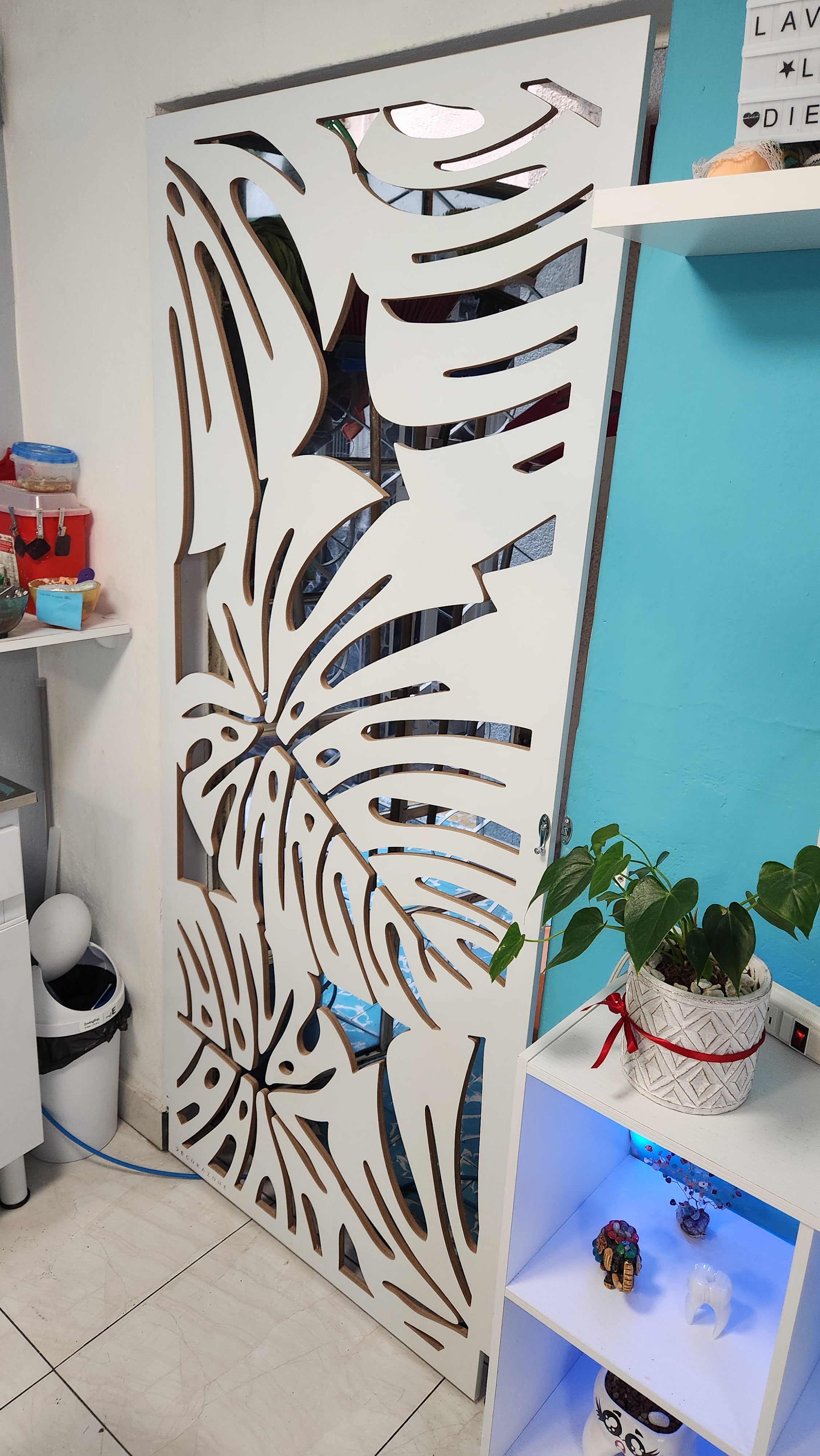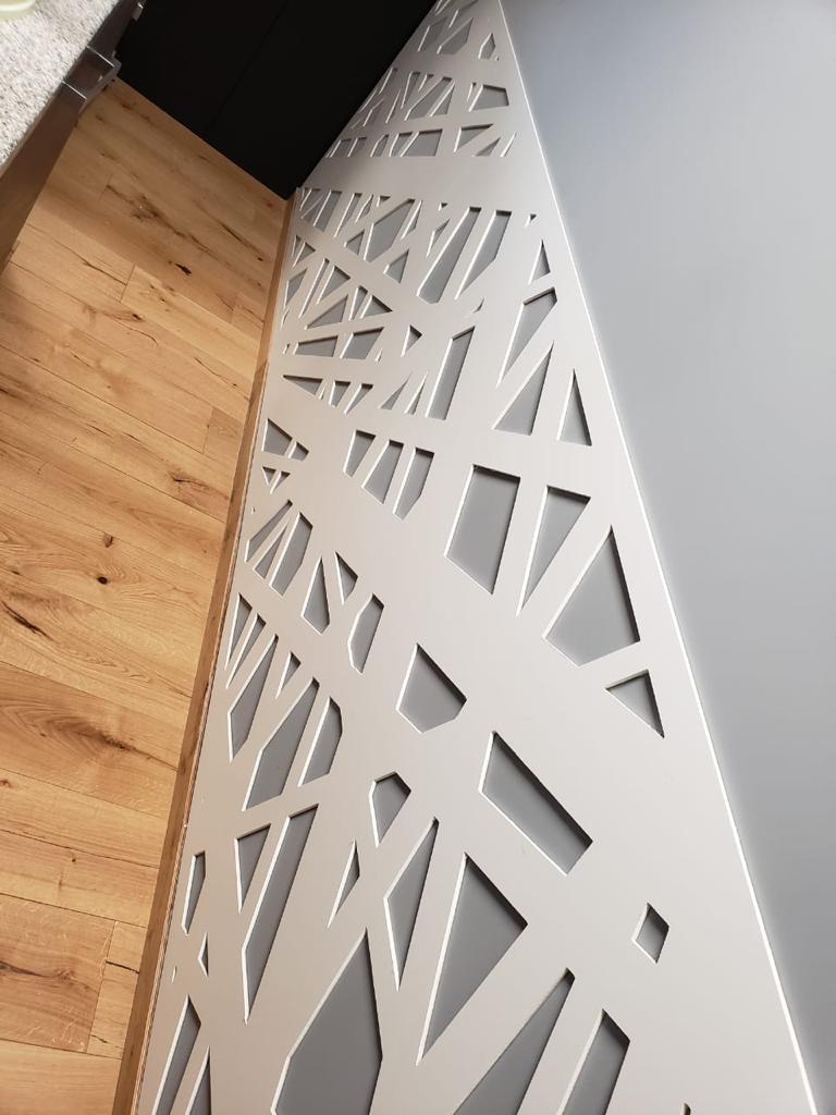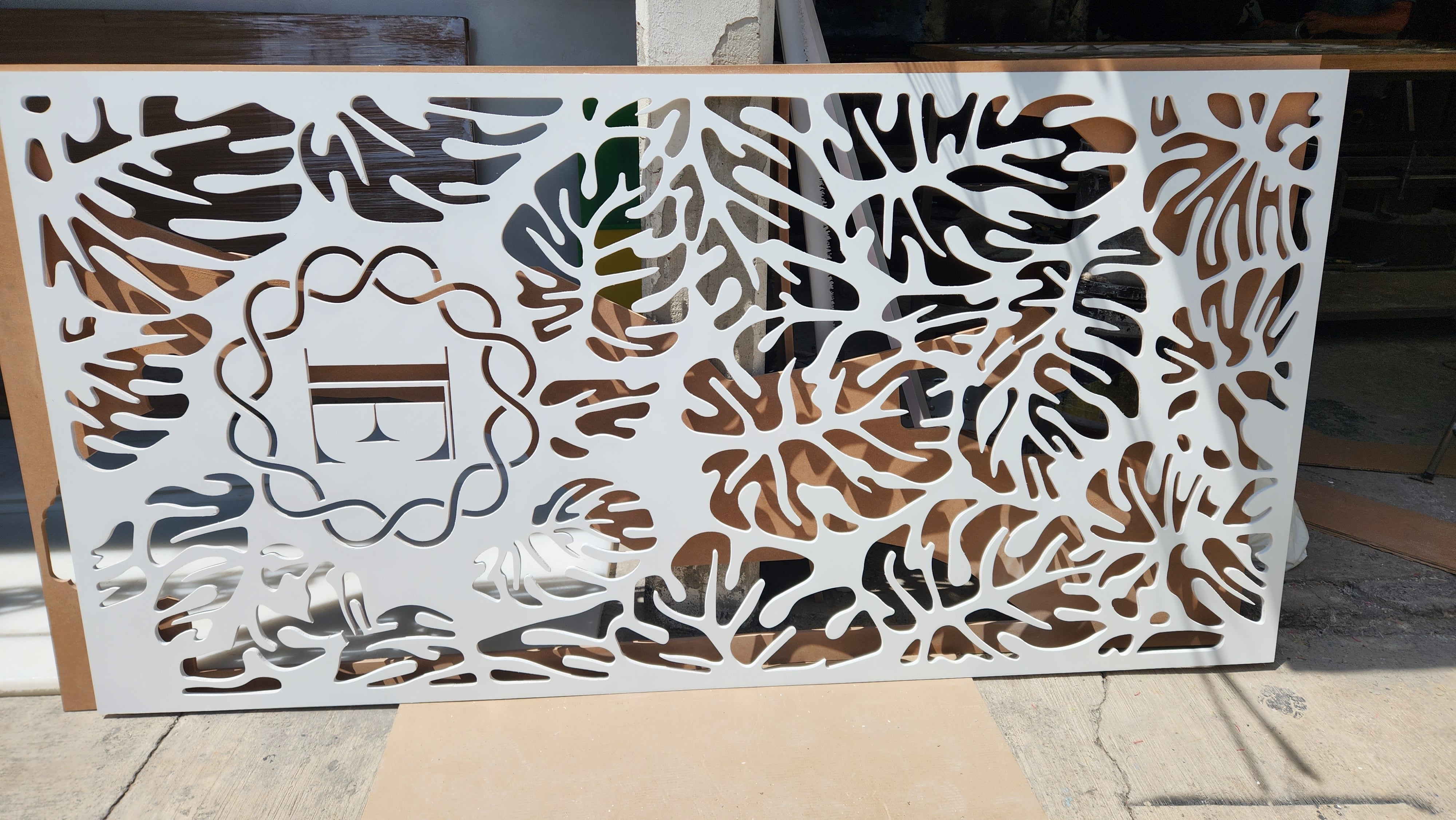 Celosía fabricada en Mdf de 12 mm con tratamiento de pintura automotiva color blanco.