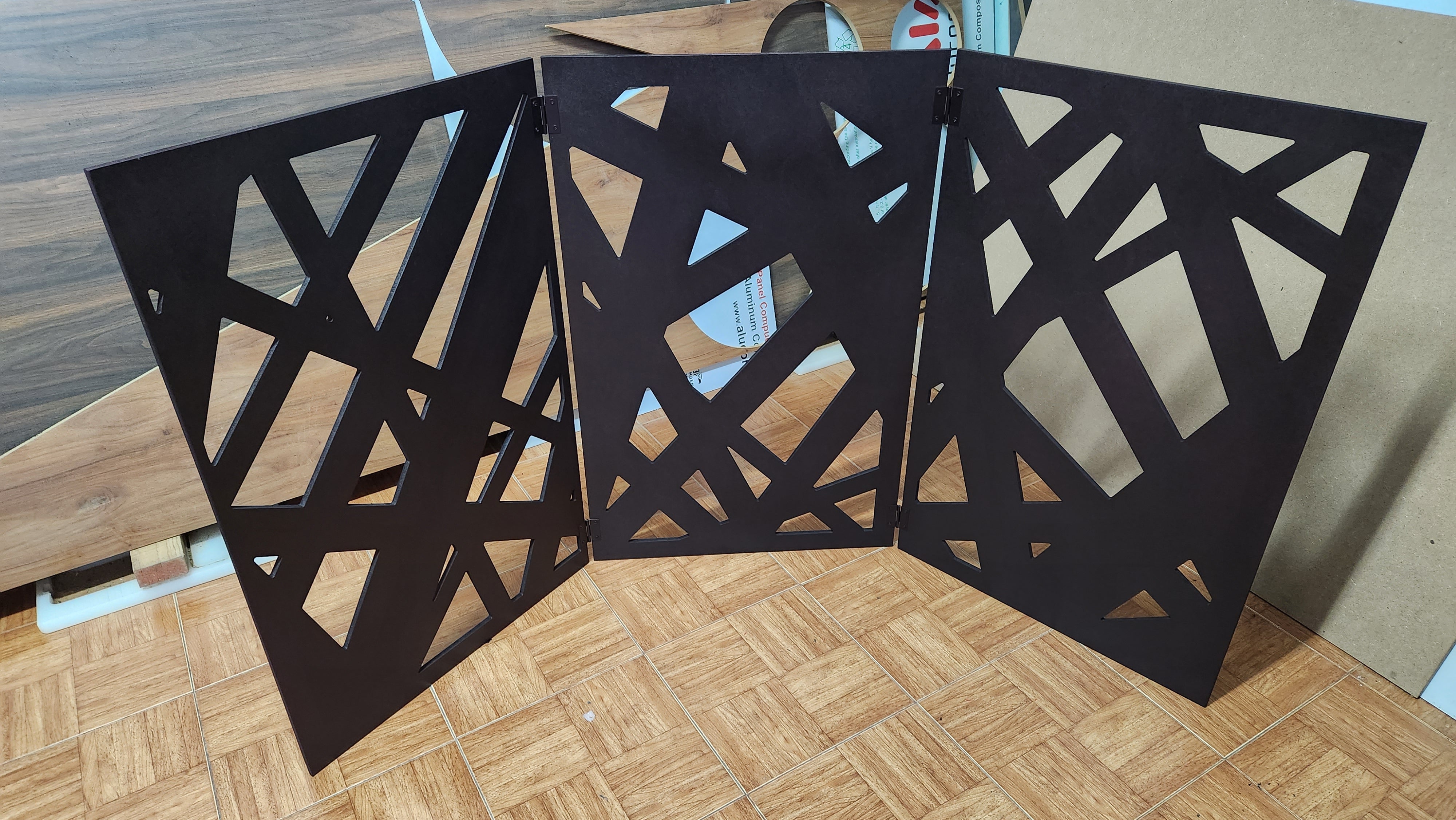 Celosías fabricadas en Mdf de 9 mm con tratamiento de pintura automotiva color chocolate.