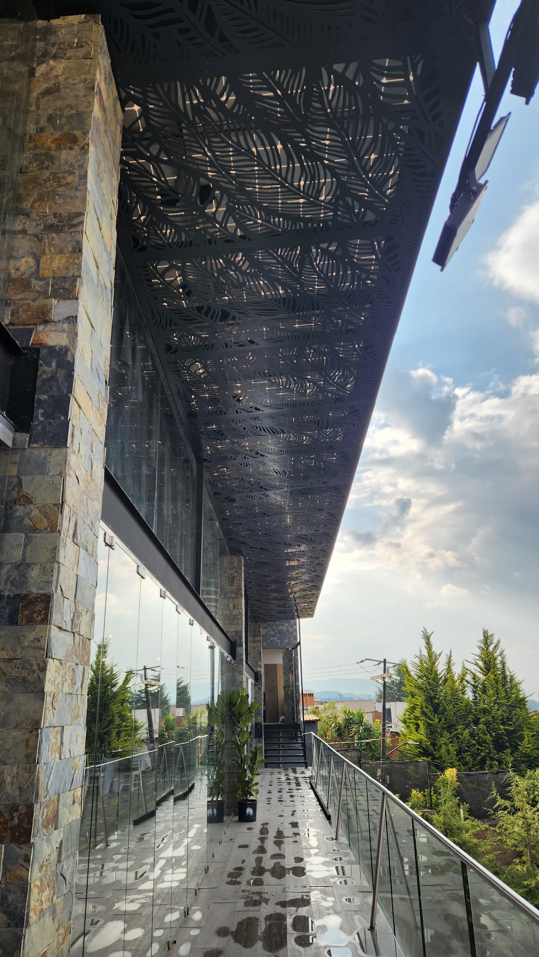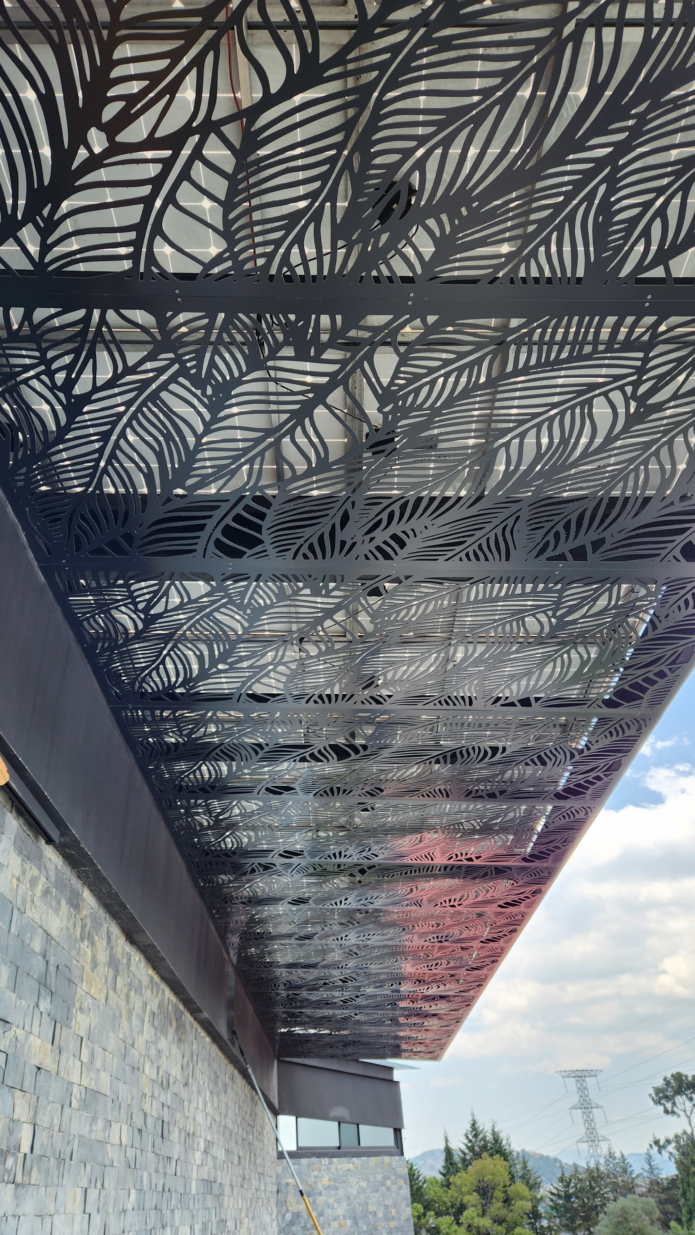 Celosías fabricadas en aluminio compuesto color negro. Instaladas en un marco de PTR y fijada con pija tech.