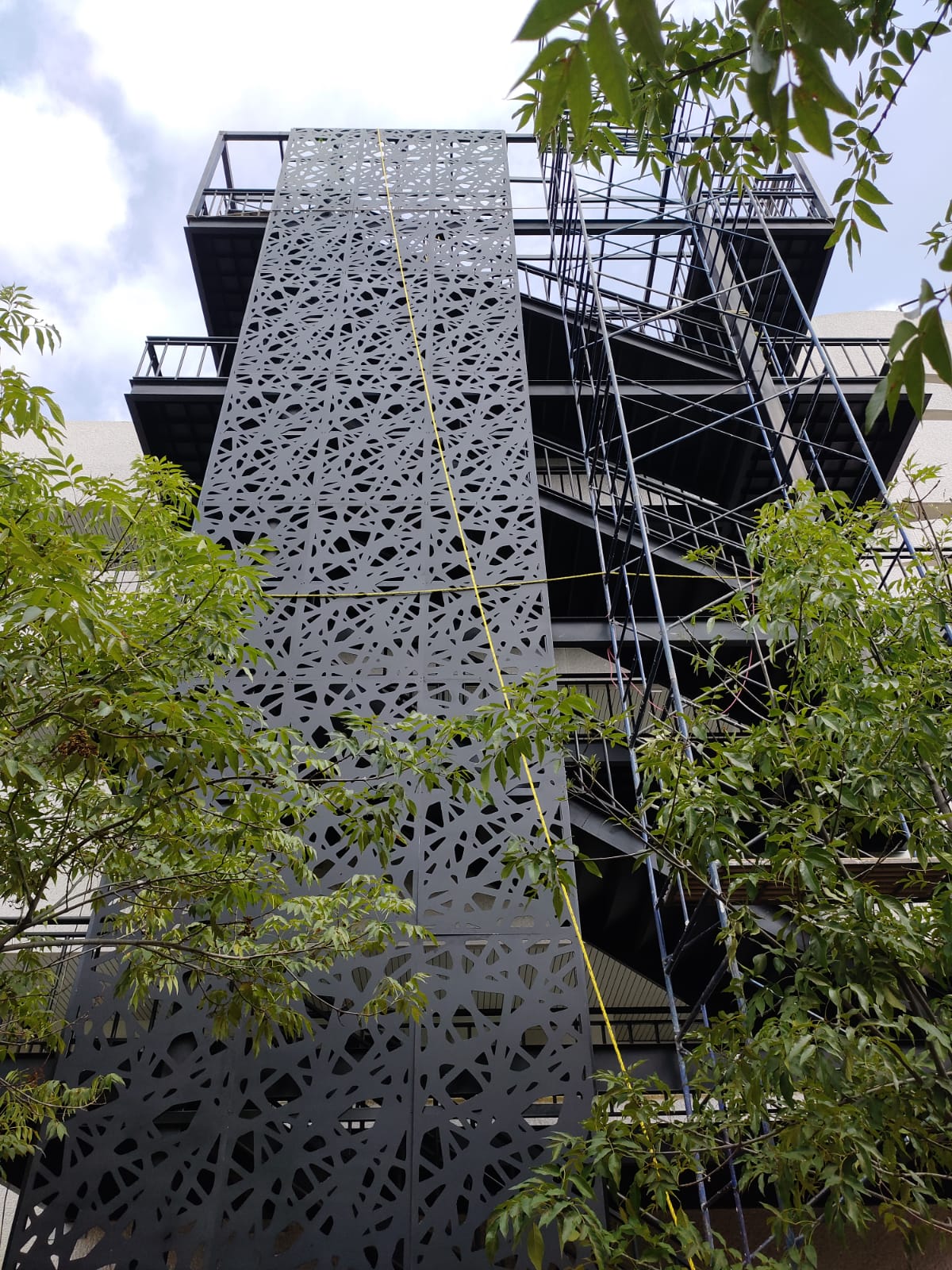 Celosías fabricadas en aluminio compuesto de 4 mm color negro.